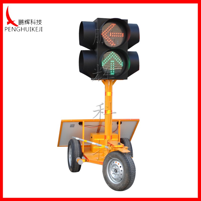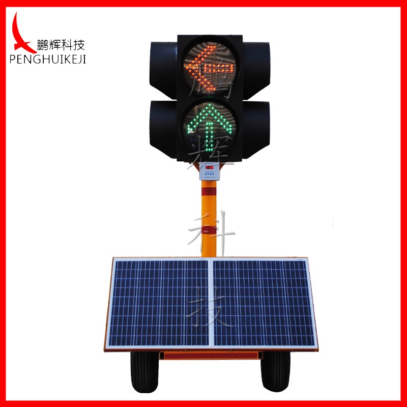 四面箭頭信號燈顯示。配有可移動小車,用于應對緊急停電及其它情況的需要。內含蓄電池,無需另接電源。配太陽能或交流220V充電,可在陰雨天下連續工作10天。